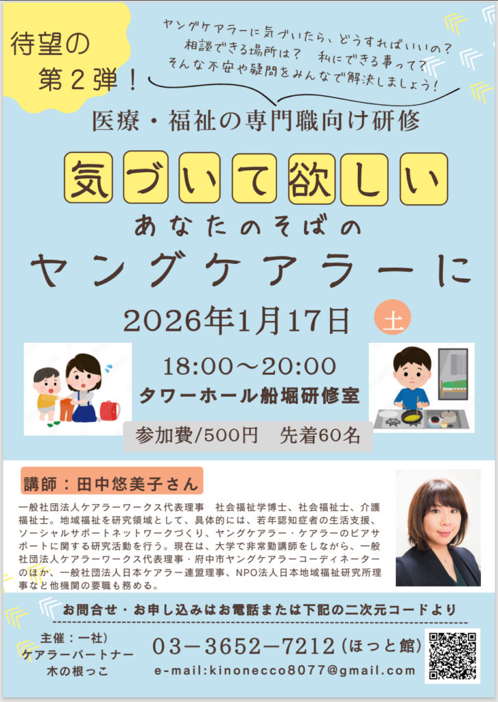前回に引き続き、一般社団法人ケアラーワークス代表理事、社会福祉学博士、社会福祉士の田中悠美子さんに事例を交えてお話いただきます。