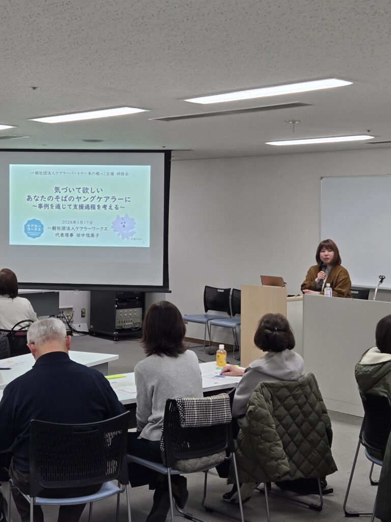 2025年2月14日にも田中先生に『気づいて欲しいあなたのそばのヤングケアラーに 医療・福祉の専門職研修』というテーマで講師をしていただきました。