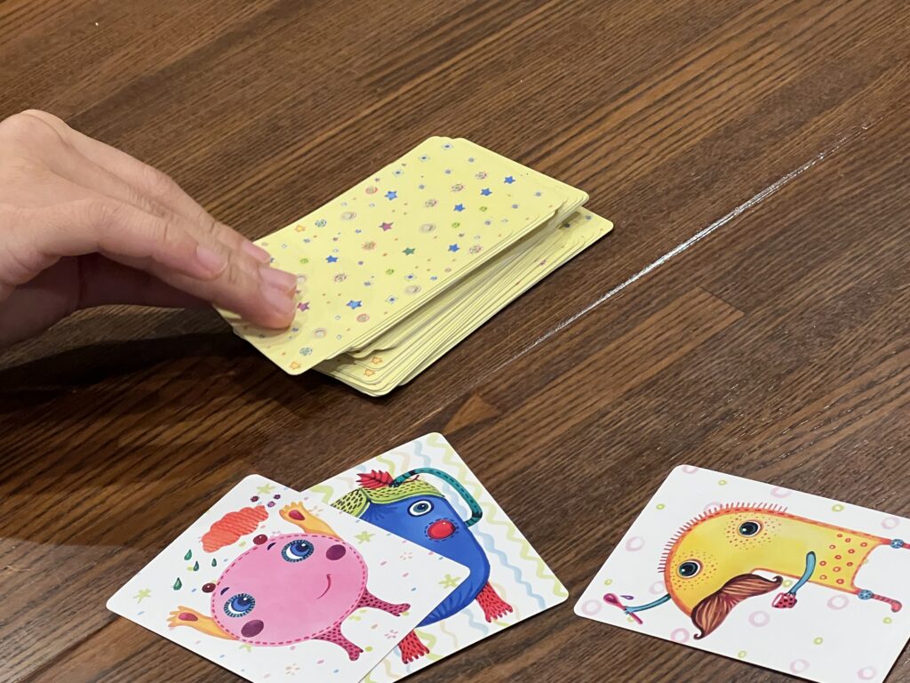次は、謎の生物のカードにオリジナルの名前をつけてその名前を叫んで素早く獲得するというシュールなゲーム「ナンジャモンジャ」に挑戦